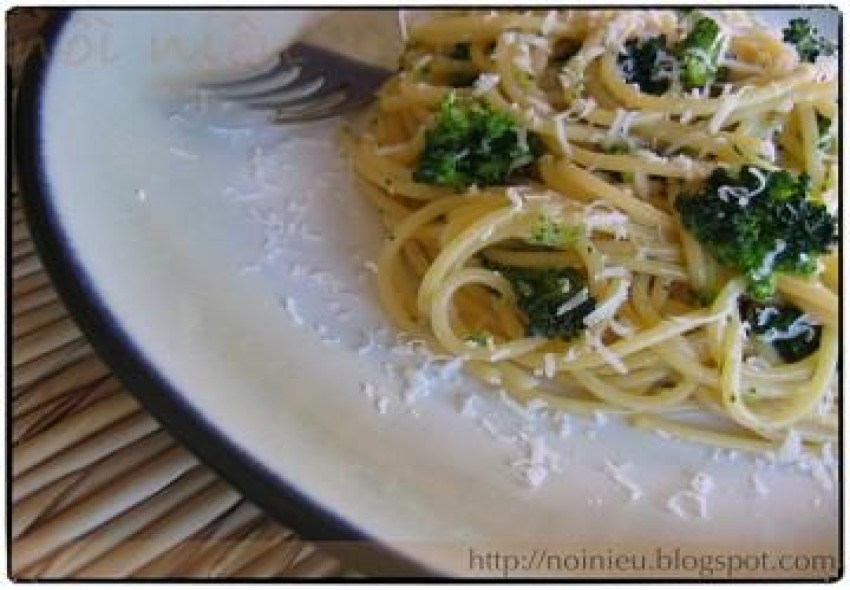- 4Trong khi chuẩn bị phần trên, bắt một nồi nước có bỏ tí muối và 1 muỗng dầu olive vào. Nước sôi, cho mì Ý vào. Luộc mì khoảng 4 phút (1/2 khoảng thời gian luộc cho đến khi mì chín được ghi trên bao bì). Gắp mì cho vào chảo, trộn đều. Tiếp tục đun cho đến khi nước trong chảo cạn, mì chín (khoảng 3 phút). Nêm muối thêm cho vừa ăn.*Tuy nhiên, vì phô mai romano và phô mai pamersan rất mặn, nên chỉ nêm muối sao cho khi bỏ phô mai vào không bị mặn.*Nếu mì chưa chín nhưng hết nước trong chảo, chêm vào nước luộc mì.