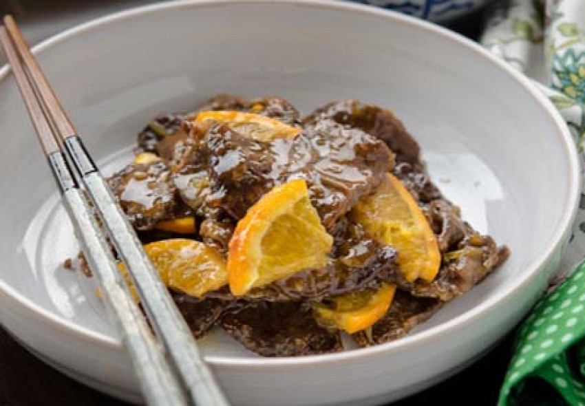 - Thì đổ thịt bò và cam vào đảo khoảng 3 phút cho thịt bò thấm, nêm nếm lại tuỳ theo khẩu vị của bạn, tắt bếp, múc ra bát ăn với cơm nóng.