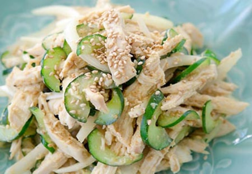 Món nộm không dầu mỡ, thơm mùi thịt gà, dưa chuột thì giòn giòn, vị chua ngọt rất dễ ăn trong những ngày nắng nóng.