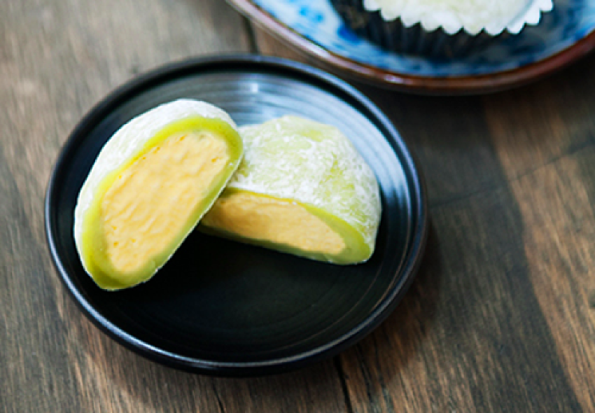 Vỏ mochi rất mềm và mịn, có vị ngọt nhẹ nên rất dễ ăn. Trà xanh quyện với kem vani tạo nên một hương vị rất riêng cho món bánh này.