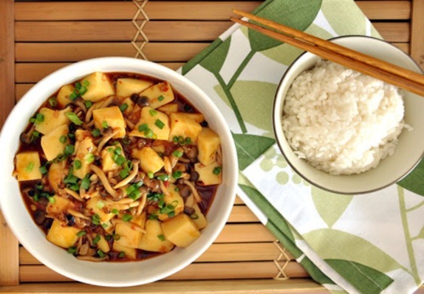 Món đậu non thơm ngậy hòa quyện cùng xốt cay và nấm thanh ngọt sẽ rất đưa cơm và làm gia đình bạn phải xuýt xoa.