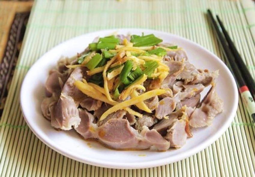 Mề gà luộc chín vừa ăn sần sật được rưới thêm một lớp nước sốt gừng cay cay thơm nồng ăn lạ miệng.