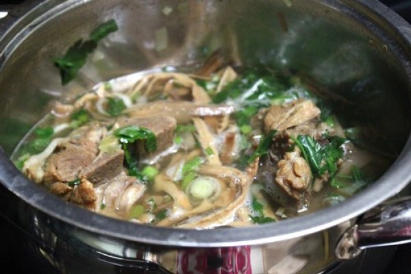 Tuy công đoạn ngâm và luộc măng khá cầu kì nhưng bù lại bạn sẽ có một bát canh vô cùng hấp dẫn với vị ngọt từ nước xương cộng thêm chút bùi bùi của măng khô.