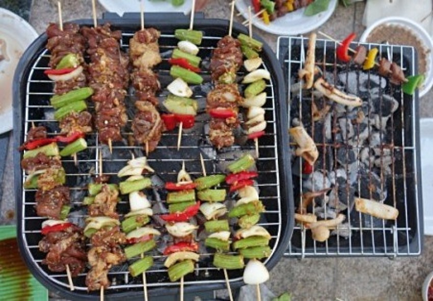 Từng miếng thịt được tẩm ướp kĩ càng, sau khi nướng trở nên thơm ngon, béo ngậy, nhưng nhờ có củ quả đi kèm bạn sẽ không cảm thấy ngấy chút nào.