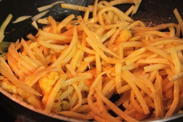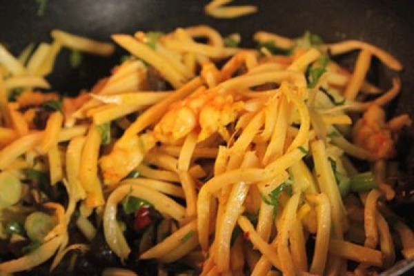 Cay cay măng tươi xào tôm và sa tế
