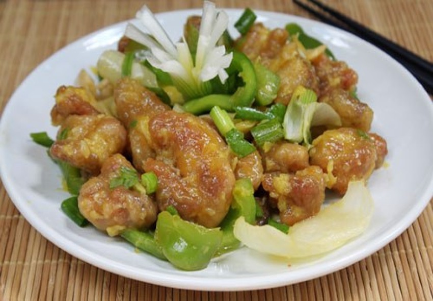 Thịt gà giòn tan, bên ngoài được áo một lớp dứa ăn hơi chua chua, ngọt ngọt, xen lẫn với ớt chuông và hành tây, làm món mặn ăn với cơm lạ miệng và hấp dẫn.