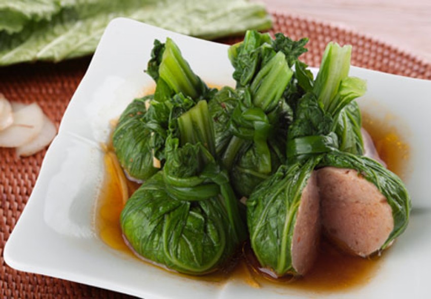 Cải bẹ xanh nhồi tôm thịt xốt gừng