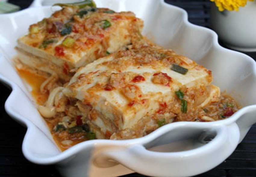 Đậu phụ non hấp tôm thịt sốt chua ngọt