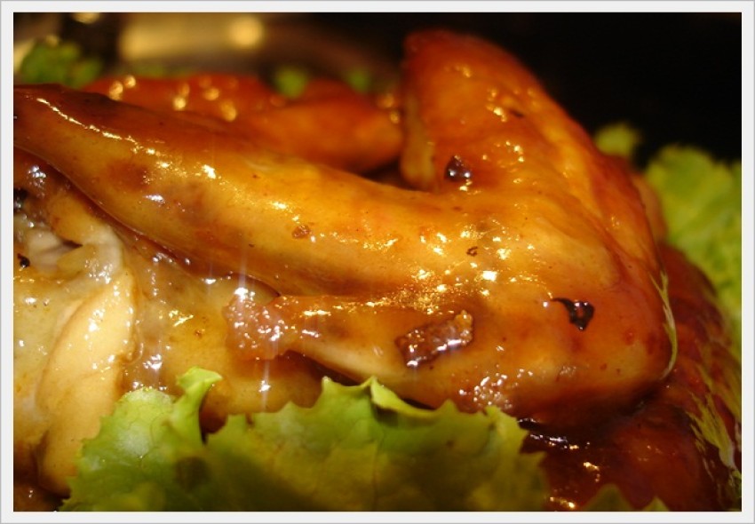 - Bẻ gãy khớp cánh để dễ chế biến hơn. Tẩm ướp một muỗng cà phê muối, 1/2 muỗng cà phê tiêu, một muỗng xúp hành tỏi băm, một muỗng xúp nước mắm ngon, một muỗng xúp nước me. Để qua 30 phút.