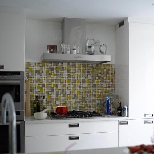 Những viên gạch mosaic được chọn màu khéo léo khiến cho người ta tưởng tượng ra một bức tranh mùa thu với một cánh đồng lúa chín nằm ngay phía sau của bếp.